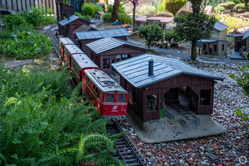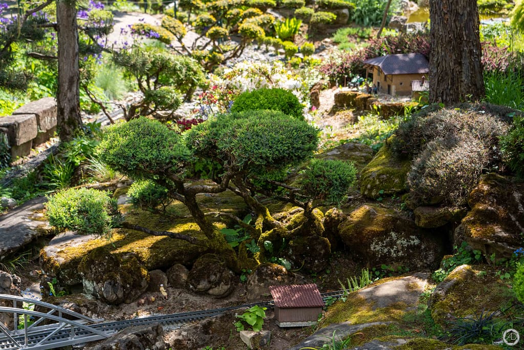 Dès l’arrivée dans le jardin ferroviaire, nous sommes transportés dans un autre univers. Au milieu des plantes, on entend le petit bruit des roues des trains miniatures sur les rails, les freinages et les démarrages. Tous les trains du jardin sont à l’échelle 1/22,5e.
